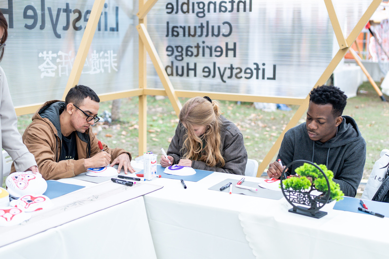同样被深深吸引的还有南京理工大学的叙利亚留学生阿黎。“我看到了好多中国非遗的作品,都非常惊艳,这些作品竟然都是手工做的,我最喜欢的是绒花,通过这些作品,我看到了中国悠久的文化历史。”阿黎参加了体验工坊内的脸谱绘制体验,在老师的指导下,成功绘制了一个“孙悟空”的脸谱造型,让他很是开心。