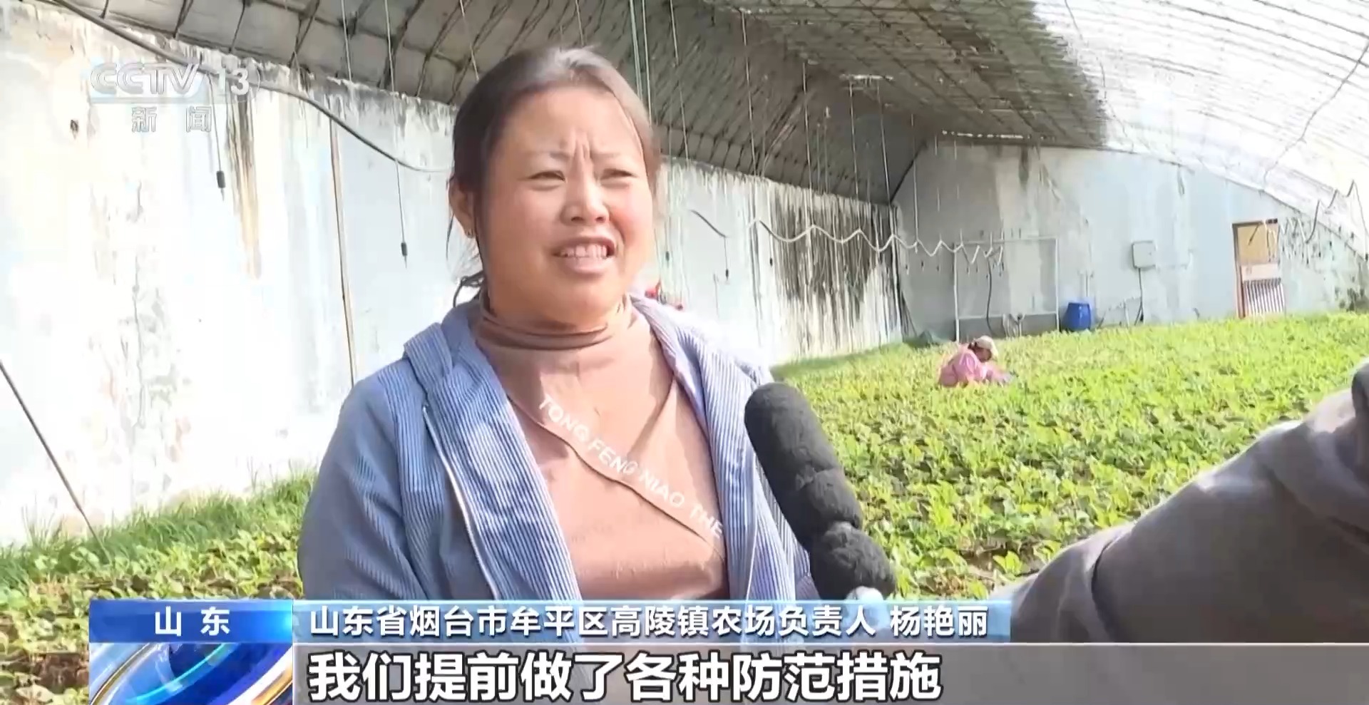 山东省烟台市牟平区高陵镇农场负责人 杨艳丽:大风大雨来临之前,我们提前做了各种防范措施,大棚膜全部换新的,提前做好准备工作。