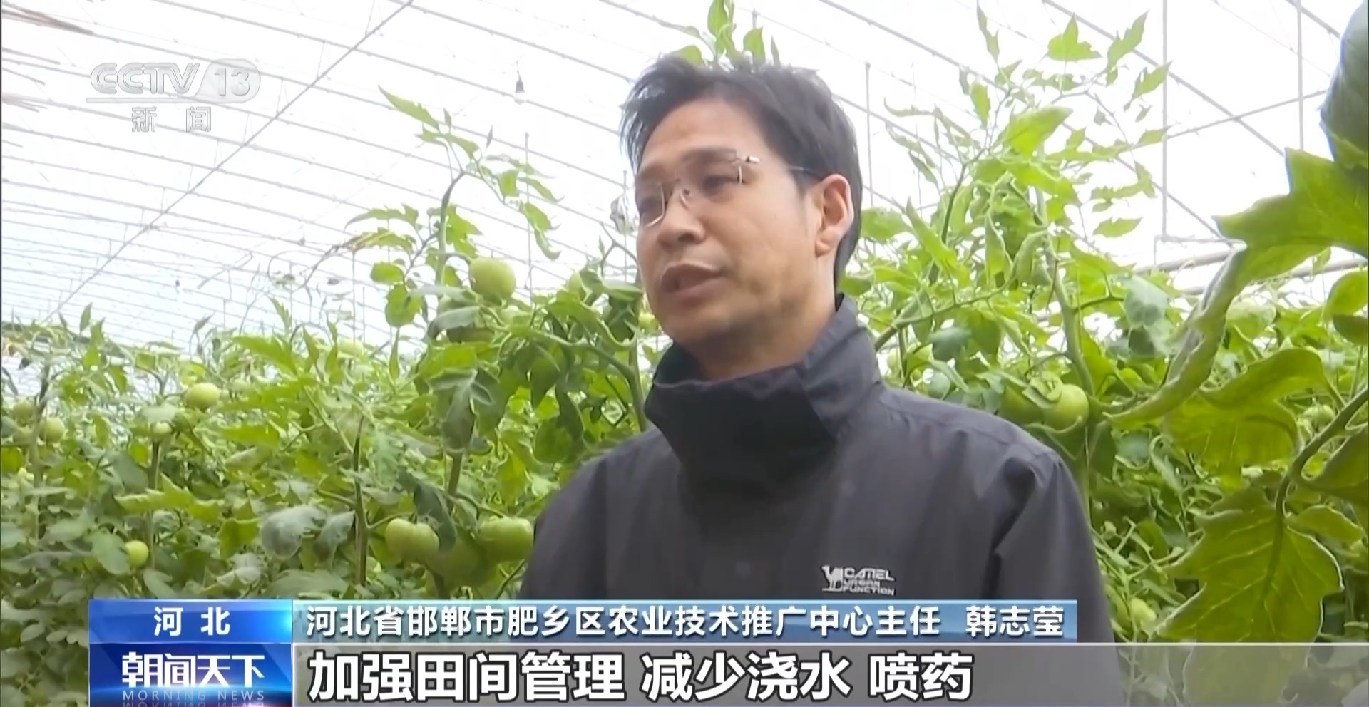 河北省邯郸市肥乡区农业技术推广中心主任 韩志莹:气温下降,一定要注意棚体内温度,特别是在棚内管理上,要加强肥水管理,加强棚内温度提升。