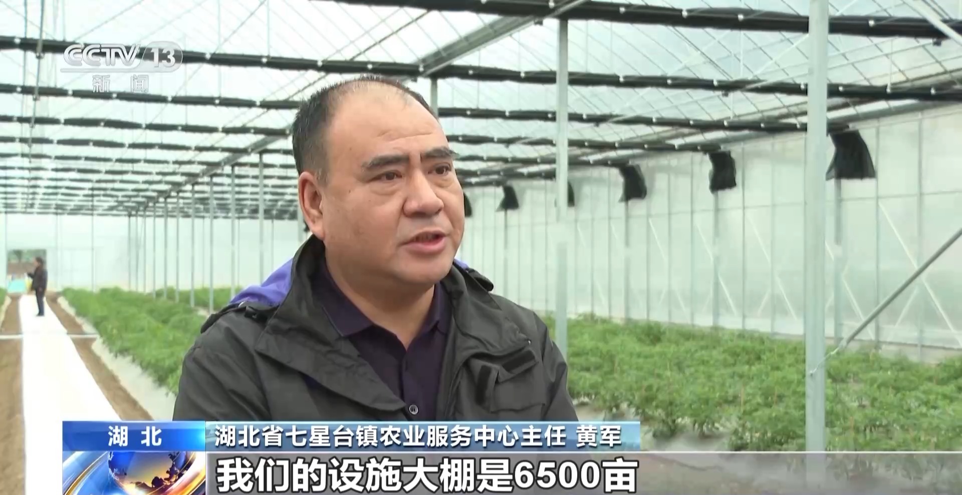 湖北省七星台镇农业服务中心主任 黄军:这一茬的蔬菜种植面积是7万亩,我们的设施大棚是6500亩,这些设施大棚在应对气候变化,在提高蔬菜的产量和稳定价格上发挥了重要作用,现在我们每天大概是6000吨的蔬菜销往全国市场。