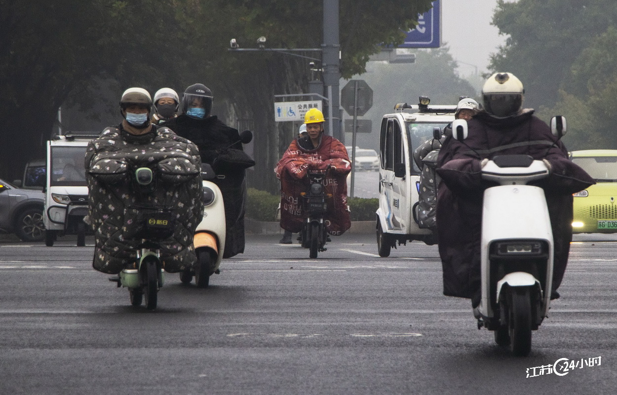 (特约摄影 徐田浩 8:07摄 9:00上线)10月22日,受冷空气影响,连云港市东海县最低气温降到5℃左右,在东海县城区街头,许多市民换上冬衣、全副武装骑车出行。