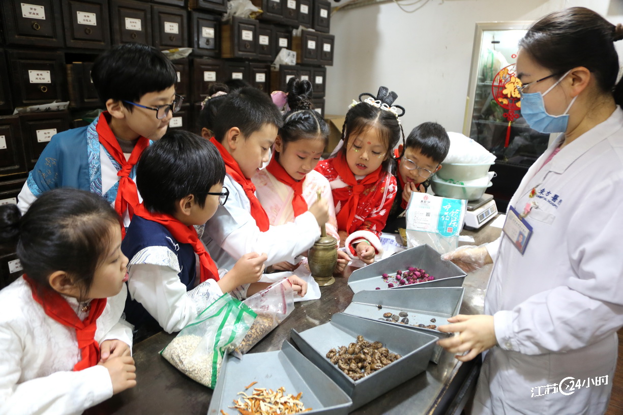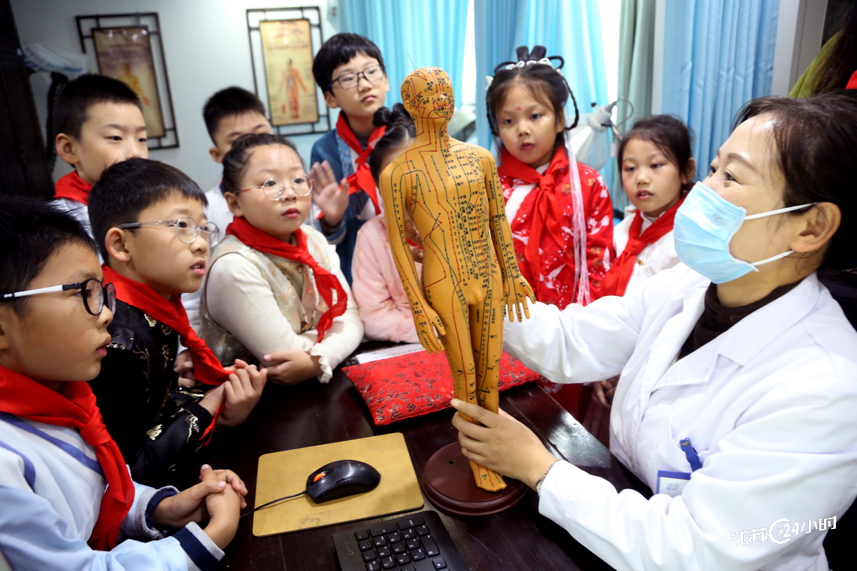 (特约摄影 王春 8:42摄 9:51上线)10月22日,连云港市东方医院医生向学生们讲解中药知识。当日是世界传统医药日,连云港市院前小学开展“感受中医文化”课外实践活动,组织学生来到当地医院中医馆学习中医药知识。