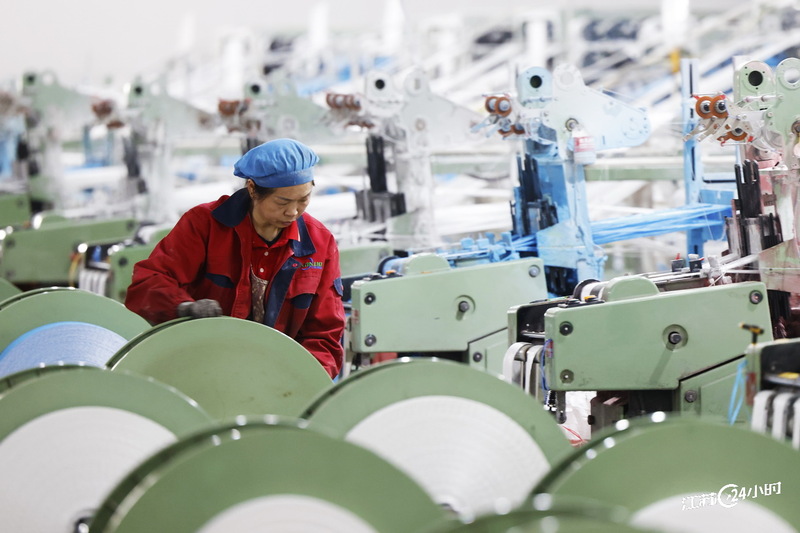 (特约摄影 许昌亮 11:09摄 15:15上线)10月22日,工人在泗洪经济开发区一家包装有限公司生产车间赶制塑编产品出口订单。当地通过政策支持,激励传统产业招引人才、加大研发投入等措施,助力传统产业转型升级实现高质量发展。