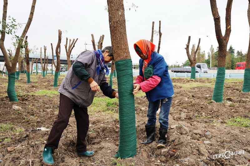 ||常熟:树木穿“衣”防寒越冬
