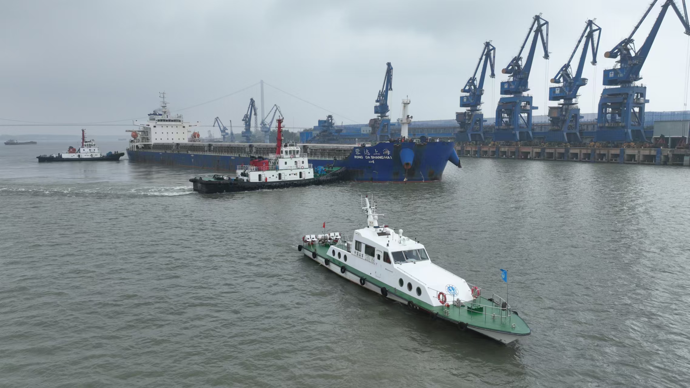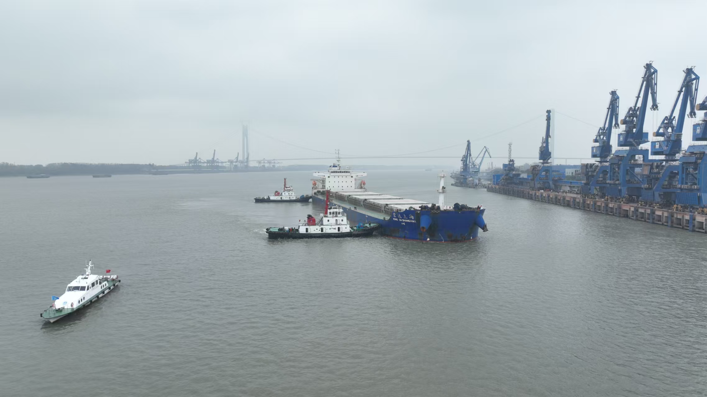 当前正值长江枯水期,为有效保障“蓉达上海”轮安全靠泊南京港,南京海事局联合市交通局、市商务局、市应急局、长江南京航道局、长三角航运发展研究院等单位,研究制定全程通航安全保障方案,综合运用海事全要素水上“大交管”系统,实施“远、中、近”三级全程管控,调派拖轮、维护艇、海巡艇现场护航,同时积极协调沪苏海事部门等实施全程跟踪维护,成功保障该船平安进江。