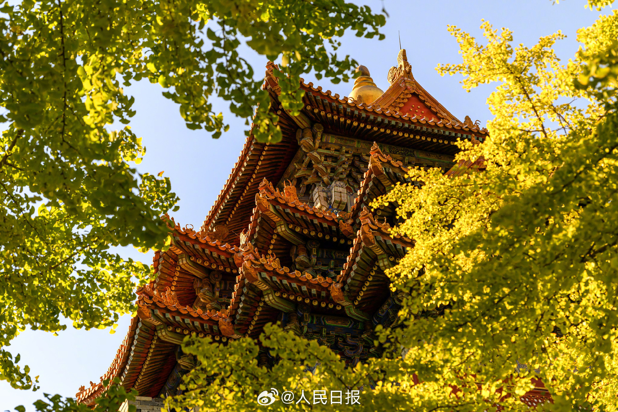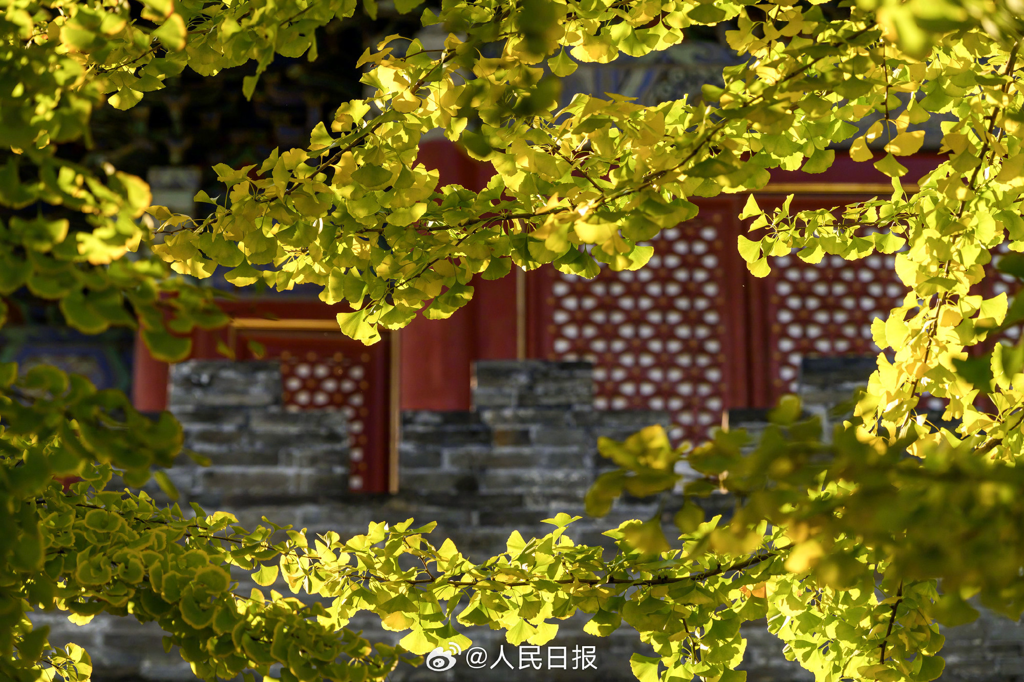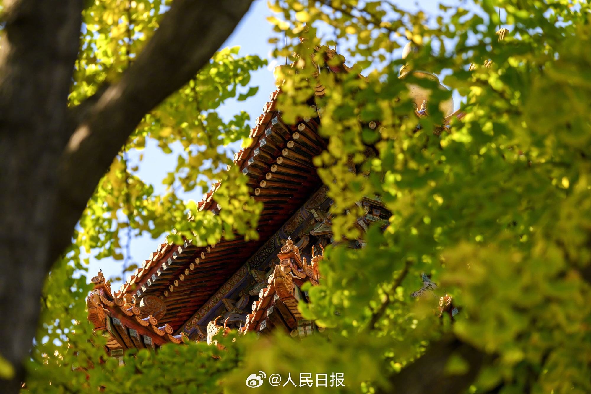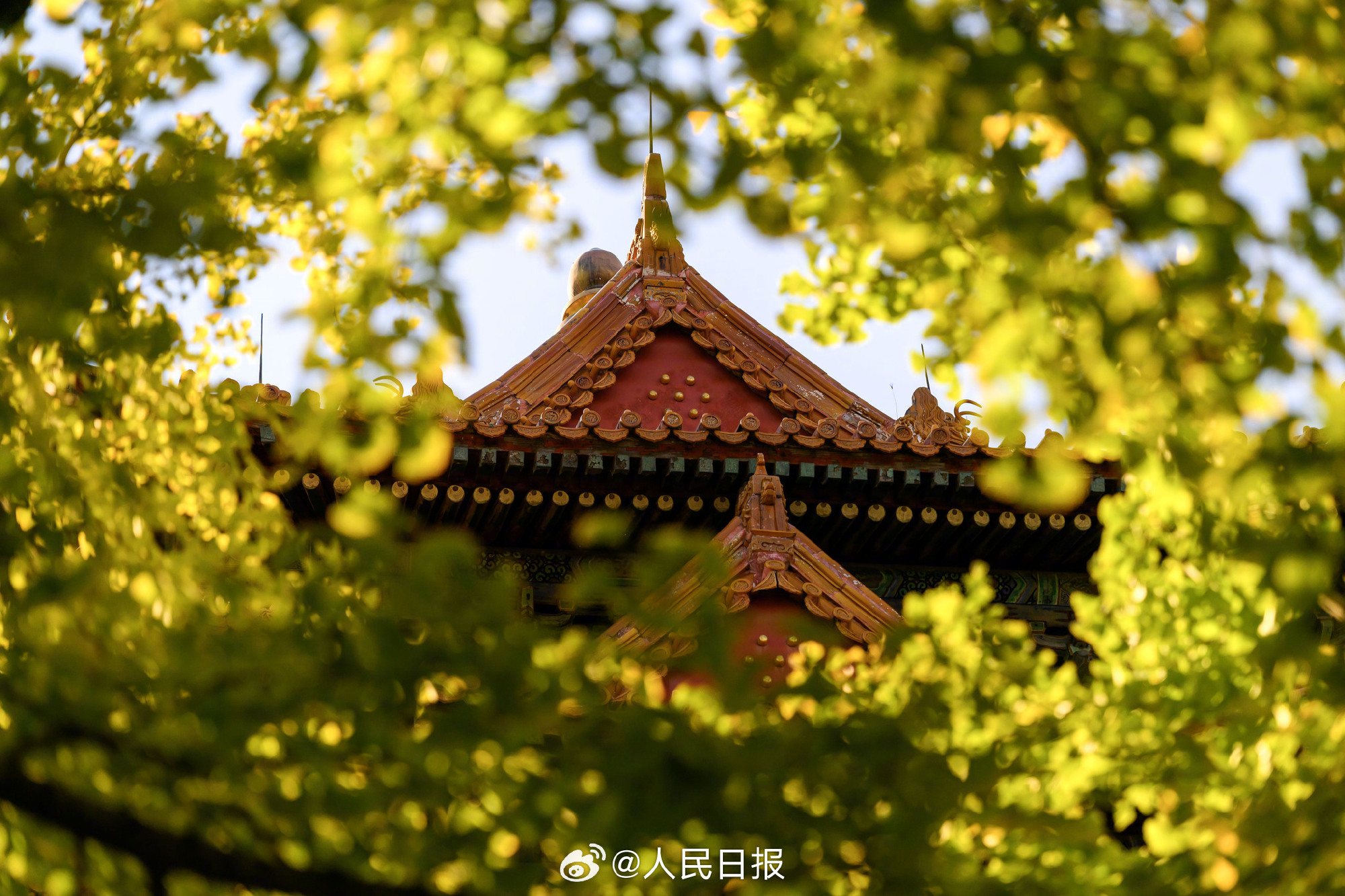10月22日,北京,故宫角楼周边的银杏树叶变黄。秋意满满,故宫角楼与金黄银杏同框。