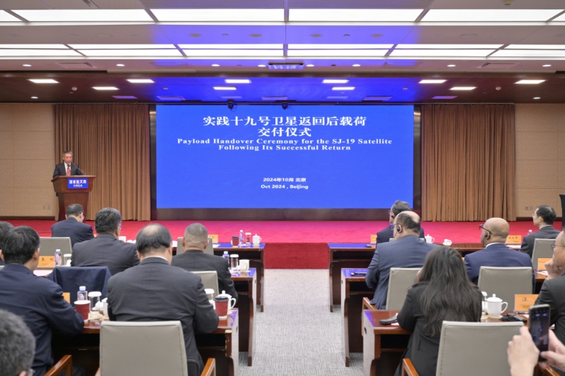 10月24日,国家航天局在北京举办实践十九号卫星载荷交付仪式,国家航天局副局长卞志刚出席活动并致辞。国家航天局与农业农村部、海南省、安徽省等国内主用户单位,泰国、巴基斯坦等国际搭载用户签署搭载载荷交付证书。中国航天科技集团有限公司与国内商业搭载用户代表单位签署搭载载荷交付证书。