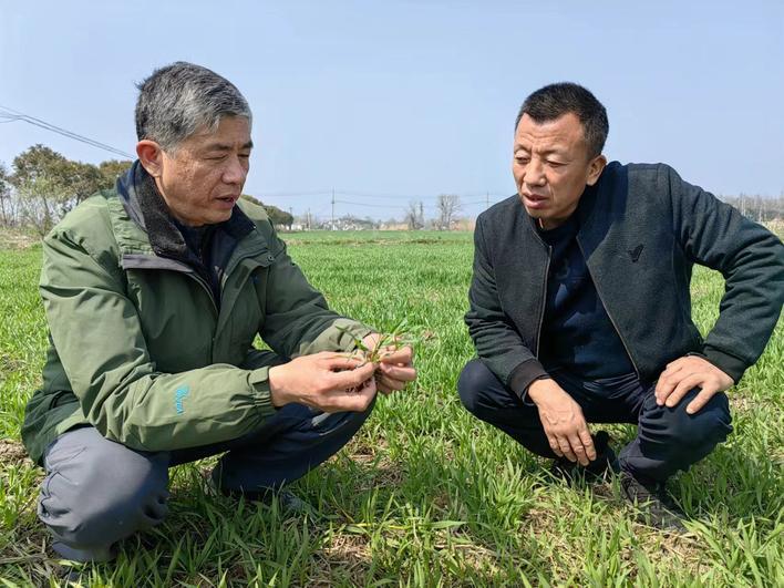 10月21日上午,一场小雨过后,扬州市江都区宜陵镇大陈村一处稻麦综合展示种植田里,到处是秋收秋种的繁忙景象,弥漫着丰收的喜悦。擦擦额头的汗珠,当地种粮大户王卫峰掏出手机指着屏幕说:“看,农技专家的回复来了!自从市里推广了‘1+6+N’新模式,农技专家来指导的频率越来越高,很多难题蹲在田边就现场解决了。”