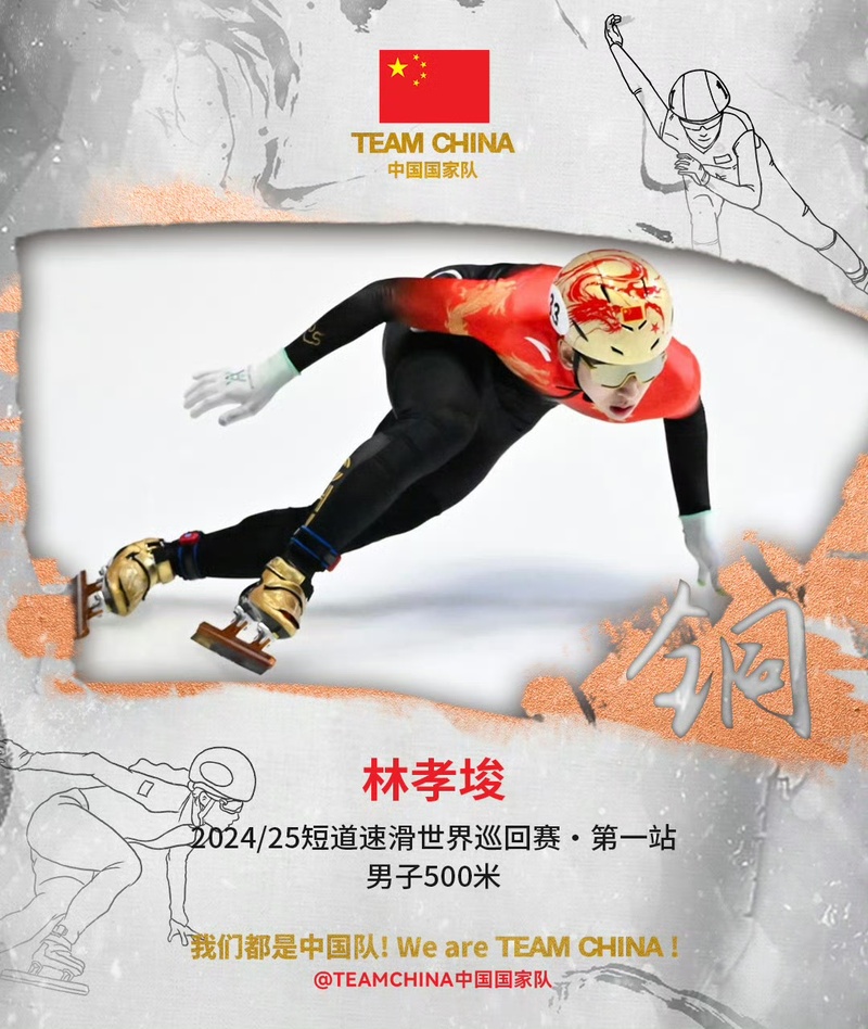 北京时间27日,国际滑联短道速滑世界巡回赛蒙特利尔站比赛,中国选手林孝埈在男子A组500米决赛中以40秒969摘得铜牌,为中国短道队赢下新赛季首枚国际赛事奖牌。加拿大选手丹吉诺和杜博瓦分别获得金牌和银牌。