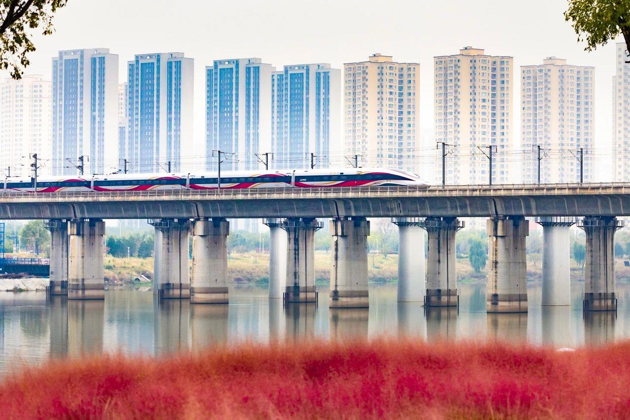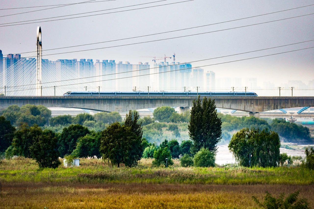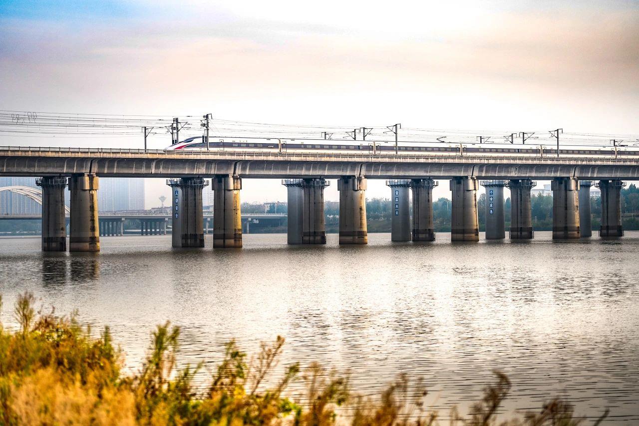 △复兴号动车组列车飞驰在陇海铁路灞河大桥上。曹欣 摄