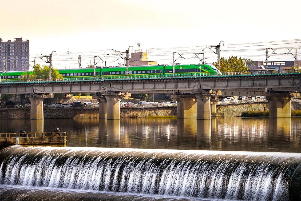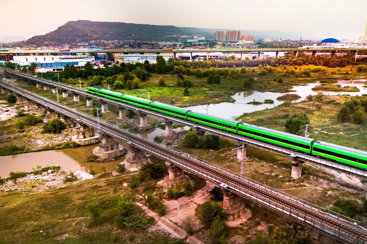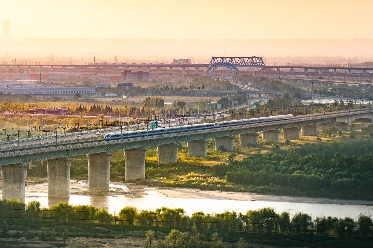 △复兴号动车组列车飞驰在陇海铁路灞河大桥上。曹欣 摄