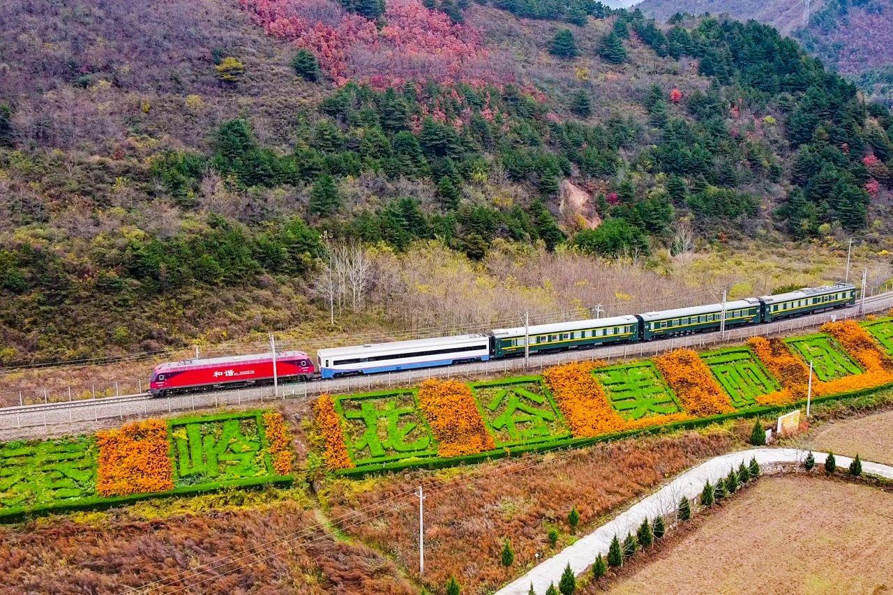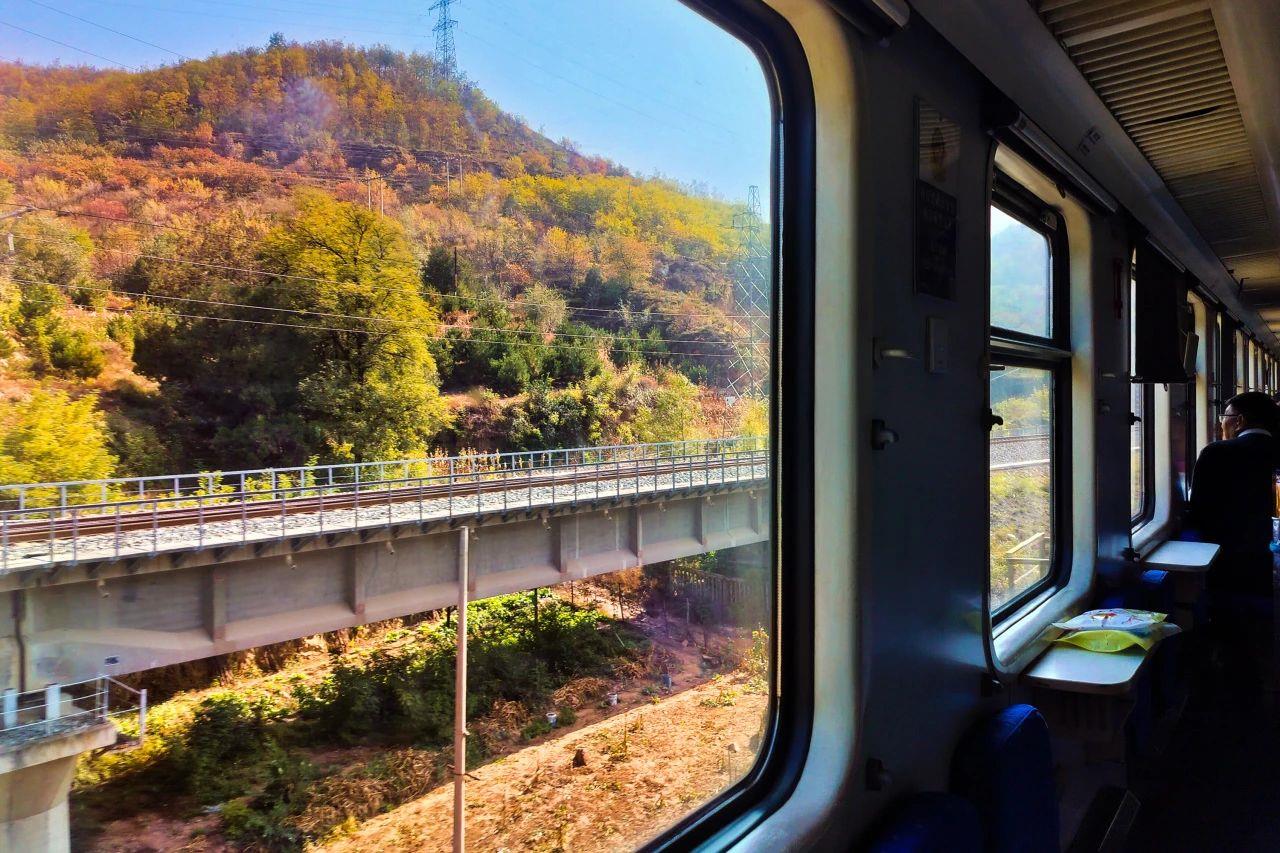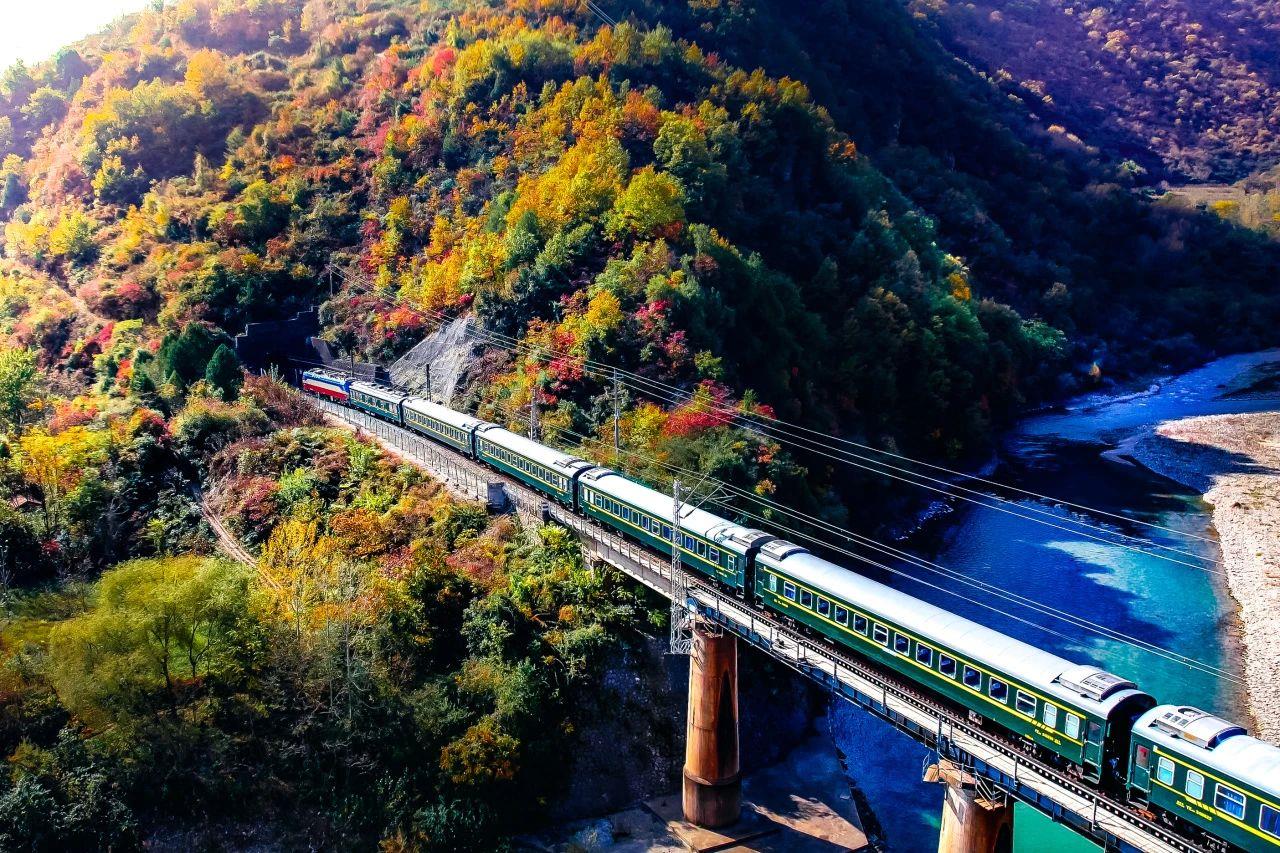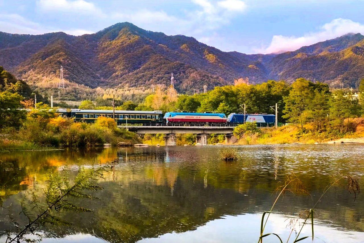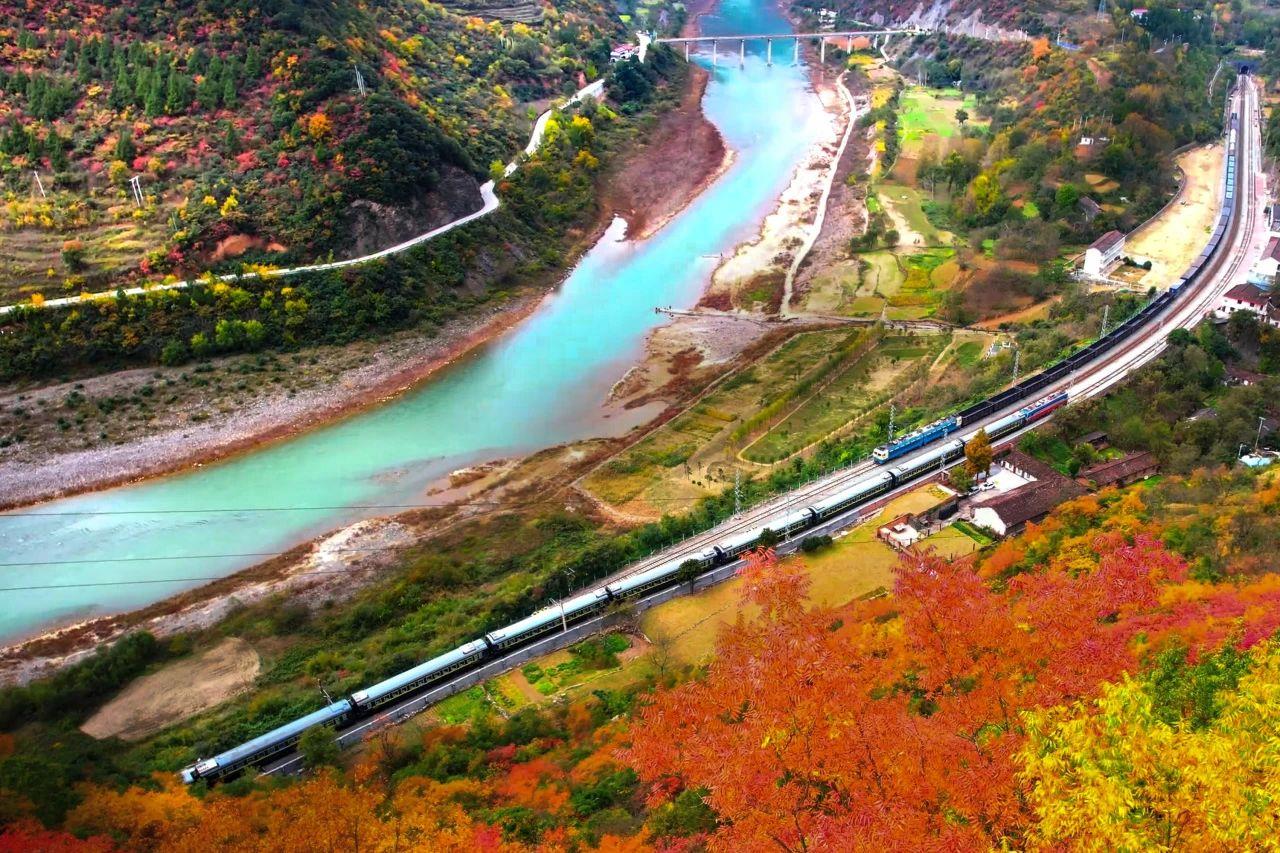 △公益性“慢火车”行驶在五彩斑斓的宝成铁路上。刘一江 摄