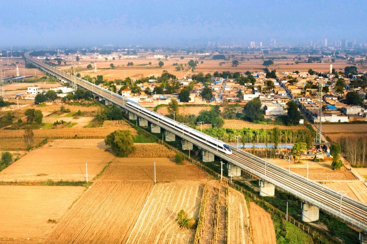 △复兴号动车组列车行驶在陇海铁路上。张赢弘 摄