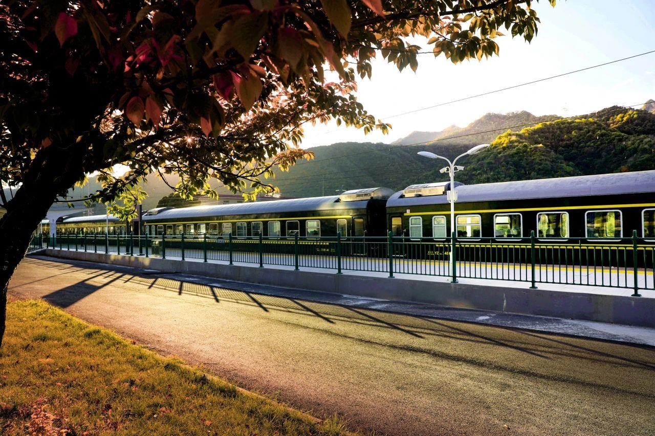 △旅客列车穿梭在山水之间。张赢弘 摄