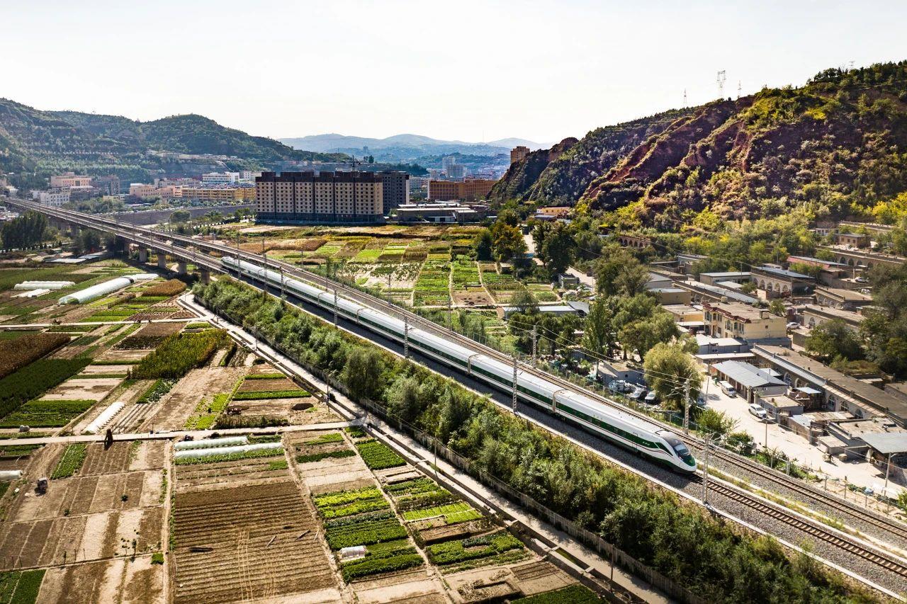 △复兴号动车组列车飞驰在包西铁路上。郭建伟 摄
