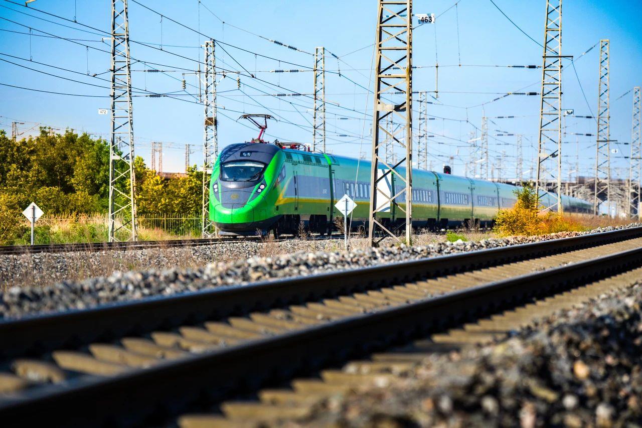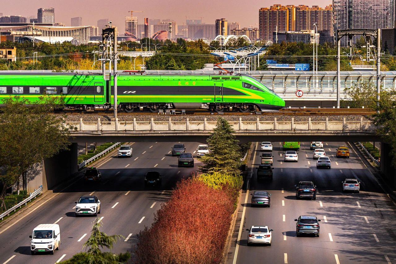△复兴号动车组列车穿过车水马龙的城市。曹欣 摄