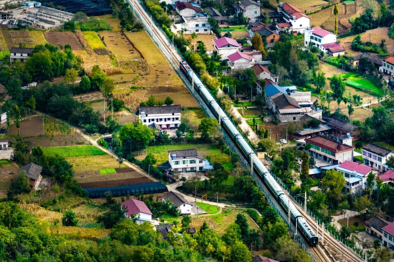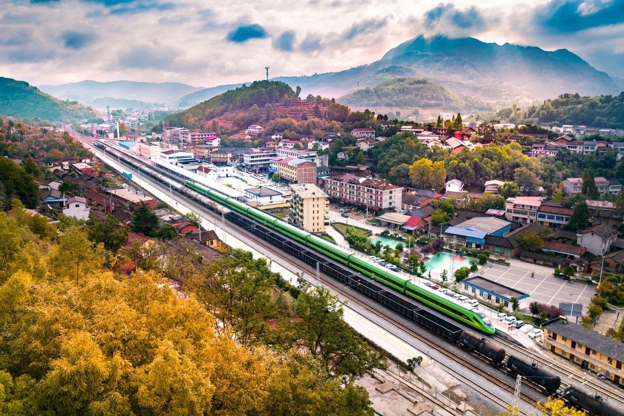 △复兴号动车组列车从宝成线阳平关站发车。刘翔 摄