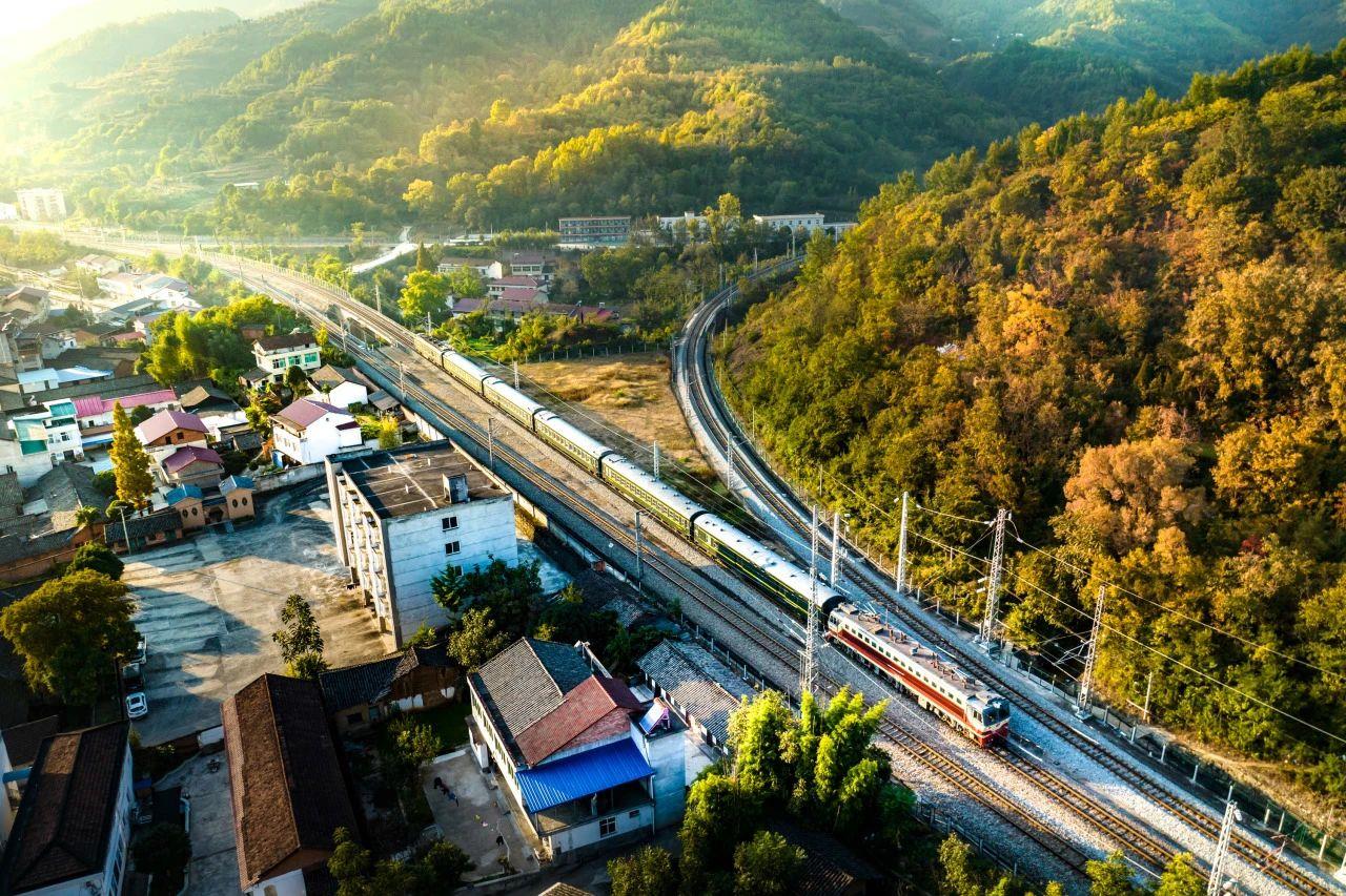 △旅客列车行驶在秋意正浓的宝成铁路上。张赢弘 摄