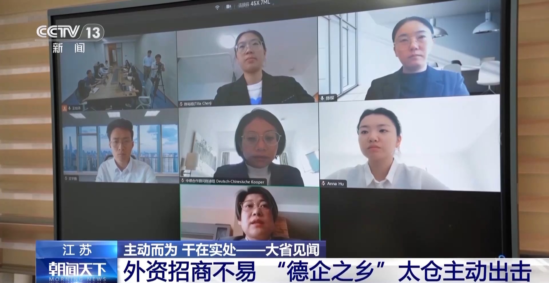 与此同时,一场视频会正在对德招商事业部的会议室里进行。视频另一头,是正派驻在德国各地的招商团队。隔着时差,前方招商团队每天都要向国内同步最新进展。为了实现精准对接,招商团队还针对德国和太仓的产业特点,细分了工业母机、汽车零部件、装备制造等多个领域,多点出击。