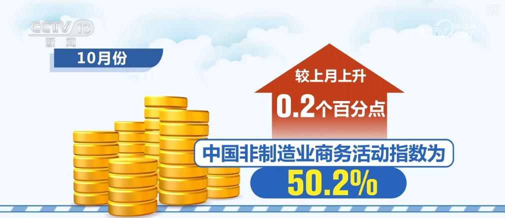 10月份,中国非制造业商务活动指数为50.2%,较上月上升0.2个百分点。