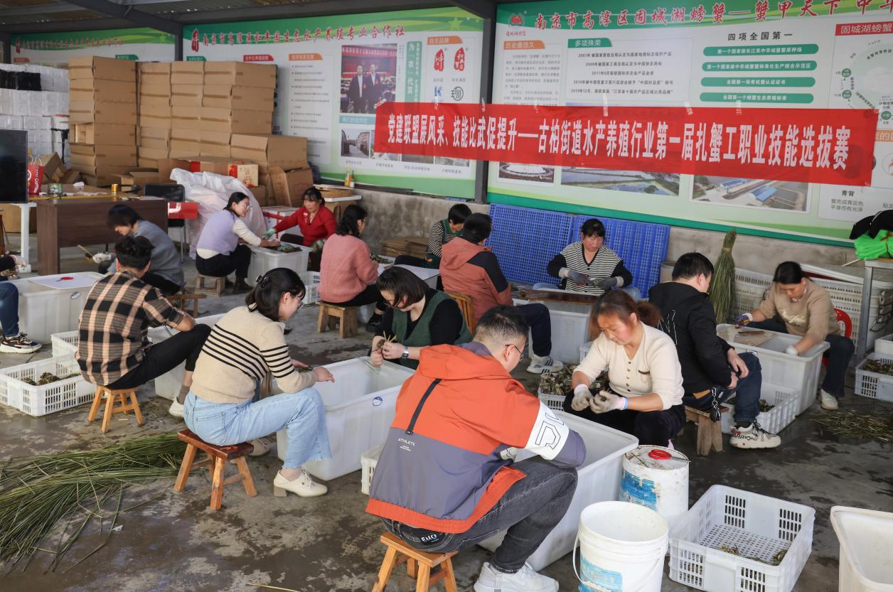 一年一度捆蟹忙,竞赛掀起新热潮。为进一步提升水产养殖户专业技能、激发职工热爱劳动、拓展党建工作载体,10月28日,由南京市高淳区古柏街道水产养殖产业链党建联盟、古柏街道总工会主办,高淳区和丰园生态水产养殖专业合作社承办的古柏街道水产养殖行业第一届扎蟹工职业技能选拔赛顺利举办,街道党工委副书记、总工会主席朱军花出席活动。