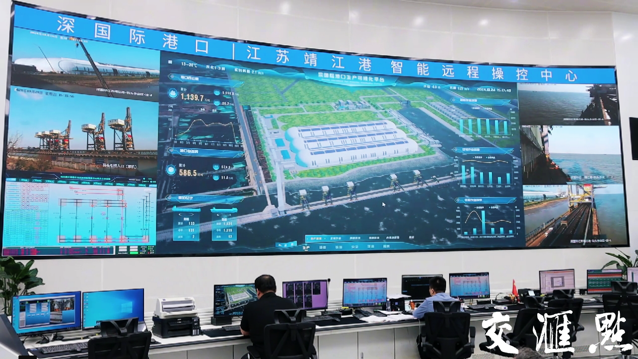 “借助数字孪生技术和生产可视化平台,可以1:1实时展现港口现场作业动态,实现全流程精细化管控。”深国际靖江港副总经理徐小灵介绍,他们坚持以数字化推动港口生产方式转型,全面推进业务管理信息化和生产操控智能化建设,“在这个智能远程操控室内,1人可以同时操作多台斗轮机,实现生产效率大幅提升。”