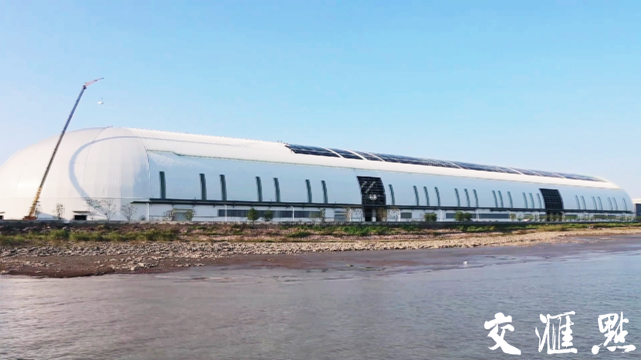 “这是深国际靖江港首创的长江沿线连跨式钢结构全封闭大棚,投资近3亿元,面积近15万平方米。”徐小灵介绍,全封闭大棚能有效避免露天作业扬尘问题,是一道坚固的“绿色屏障”。同时,在全封闭大棚顶部建设光伏发电站,装机容量为13兆瓦,预计年平均发电量约1200万千瓦时,可以减少二氧化碳排放约1.2万吨,打造近零碳港区。据介绍,未来三年,深国际靖江港还将再建两座连跨式钢结构全封闭大棚。