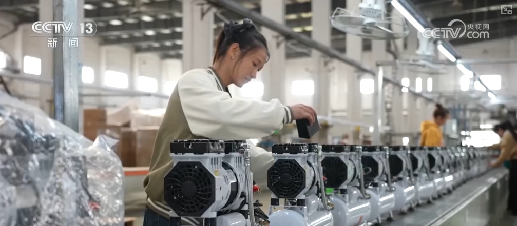 在宿迁市的这家机电公司,一台台体积小巧的家用空气压缩机正在进行包装,准备发往国外市场。
