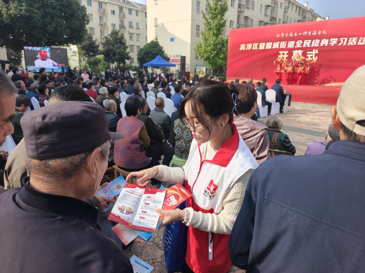 为深入开展普法宣传教育,普及法律知识,进一步提高社区居民学法、懂法、用法意识,增强居民的法治观念,近日,高淳区固城街道平安法治办、固城派出所结合高淳区暨固城街道全民终身学习活动周开幕式活动,联合走进前锦苑小区广场开展国家安全、反邪、反诈以及《中华人民共和国反有组织犯罪法》普法宣传教育活动。