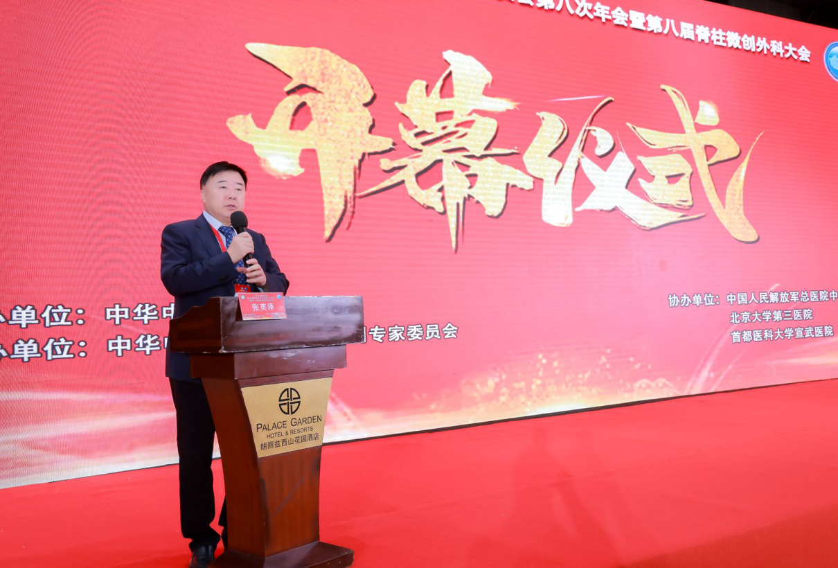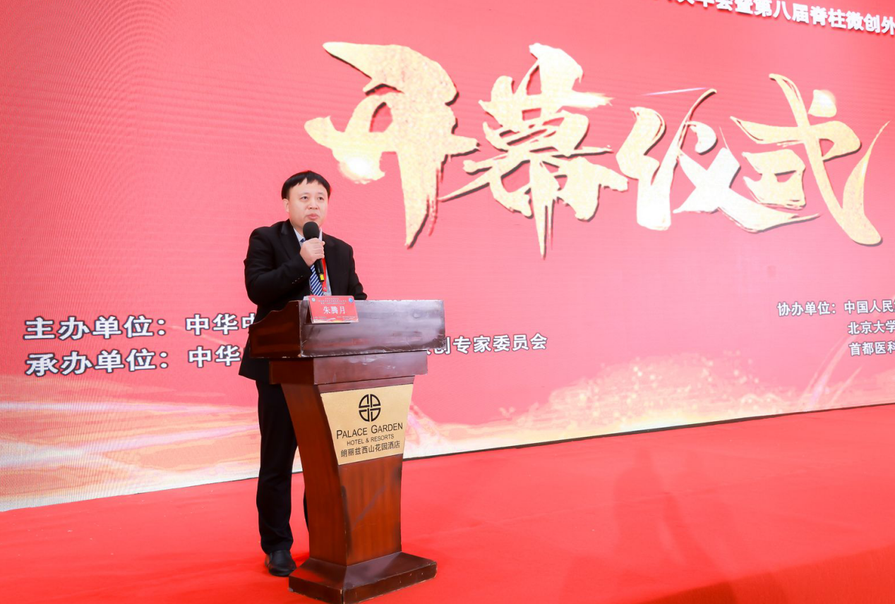 中华中医药学会脊柱微创专家委员会主任委员朱腾月主持了中华中医药学会OSE单孔分体脊柱内镜研究组成立仪式。