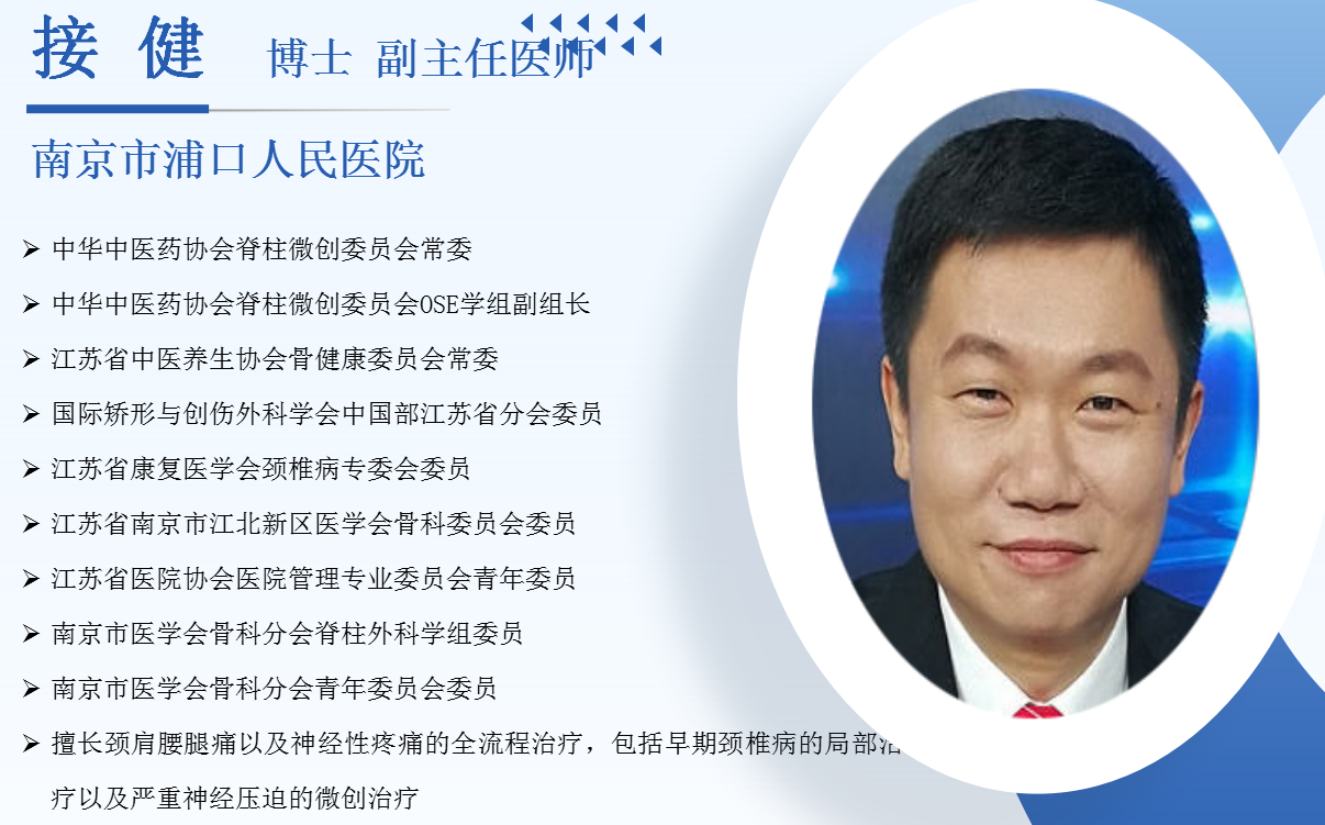 近日,中华中医药学会脊柱微创专家委员会第八次年会暨第八届脊柱微创外科会议在北京召开,浦口人民医院脊柱科副主任接健应邀参会,并在会上作专题报告。