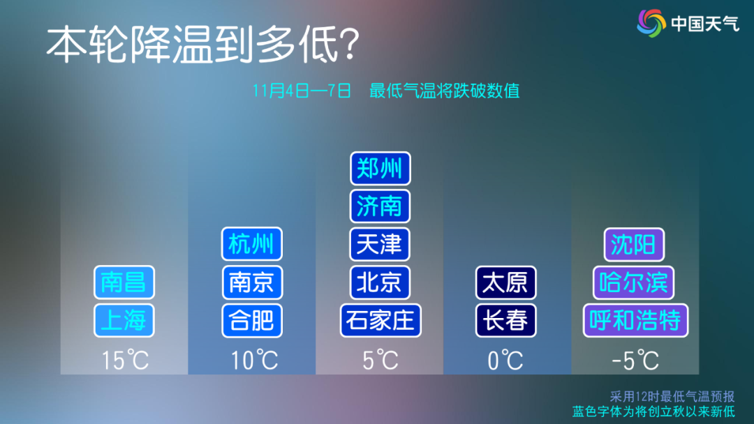 过程来看,3日冷空气降温影响就开始凸显,4日开始,东北、华北、黄淮等地将出现剧烈降温,部分城市气温还会创立秋后新低。5日开始,南方多地气温也将陆续转为偏低,最高气温将降至20℃以下,秋凉显著。