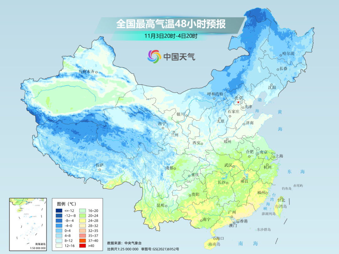 北京、天津、石家庄明天最高气温还有20℃左右,到下周一就跌至10℃出头,最低气温将降到5℃以下,冬日感拉满了!