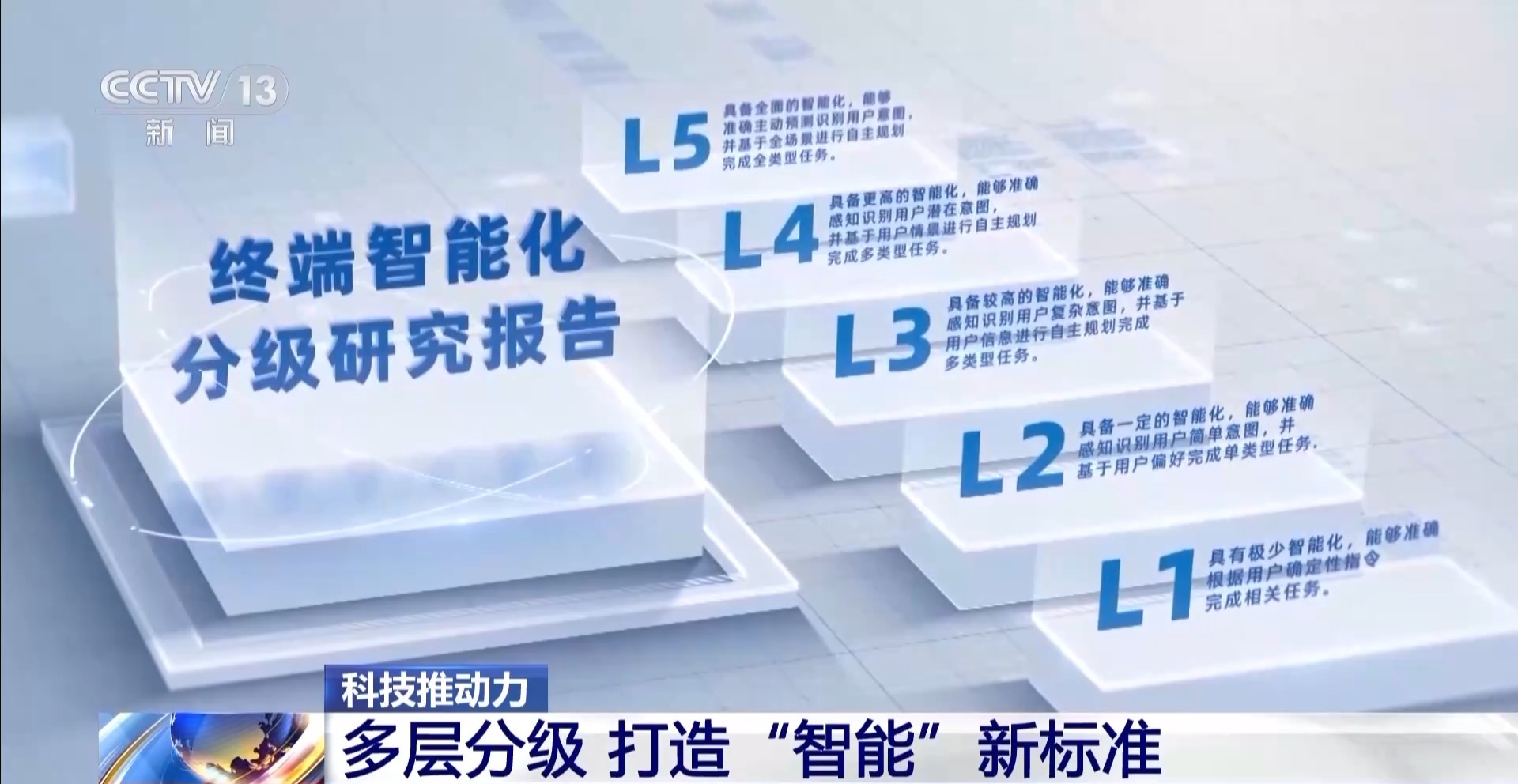 近期,中国信息通信研究院牵头发布了全球首份《终端智能化分级研究报告》,参考汽车自动驾驶的分级标准,这份报告将终端智能化水平由低到高分为L1—L5五个等级,等级越高,意味着终端在任务完成中的自主参与程度越高。帮助消费者理解他们的设备能做什么,也为产业发展提供了一份清晰的技术路线图。