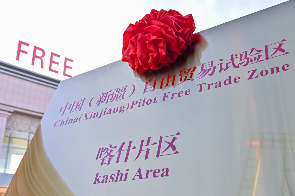 中国(新疆)自由贸易试验区喀什片区牌匾(2023年11月11日摄)。新华社记者 丁磊 摄