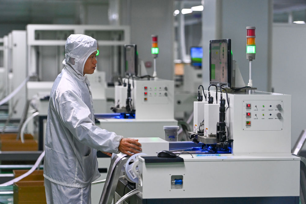 在新疆喀什综合保税区内的一家电子科技公司,工作人员在生产车间作业(2023年11月4日摄)。新华社记者 丁磊 摄