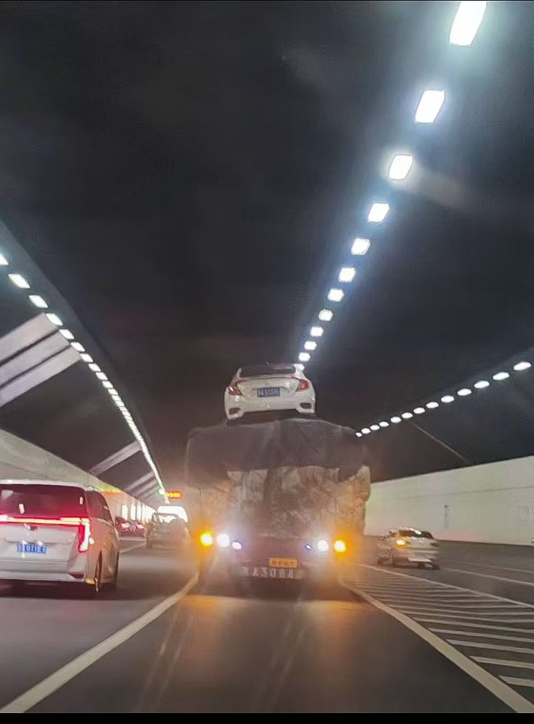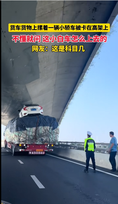 经查,该车于昨晚从浙江绍兴载货驶往新疆,途经南京时接单加装一辆轿车,运往青海西宁。途中未发生高架桥碰擦或车辆被卡情形,交警现场对驾驶员开展警示教育,消除了违法状态。
