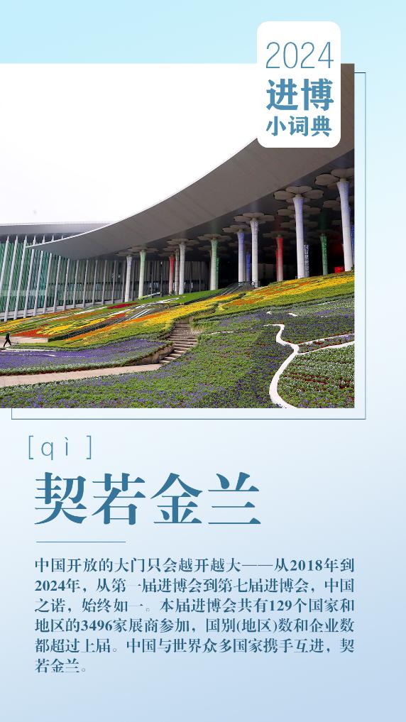 中国开放的大门只会越开越大——从2018年到2024年,从第一届进博会到第七届进博会,中国之诺,始终如一。本届进博会共有129个国家和地区的3496家展商参加,国别(地区)数和企业数都超过上届。中国与世界众多国家携手互进,契若金兰。