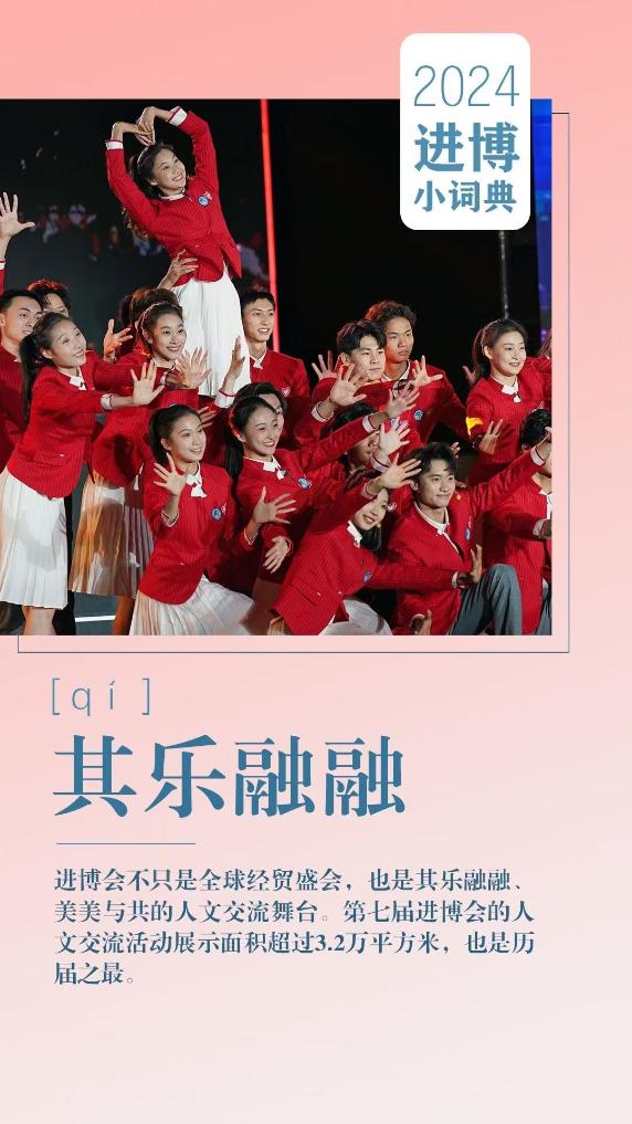 进博会不只是全球经贸盛会,也是其乐融融、美美与共的人文交流舞台。第七届进博会的人文交流活动展示面积超过3.2万平方米,也是历届之最。