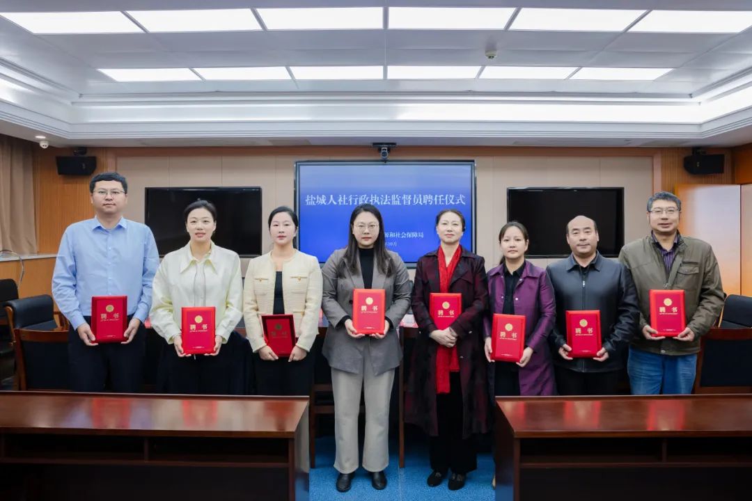 新华报业网讯 10月31日,盐城市人社局举行首届行政执法监督员聘任仪式,悦达集团(香港)有限公司团委书记顾春兵、亭湖区委社会工作部副部长陈诚等8人接受聘任。