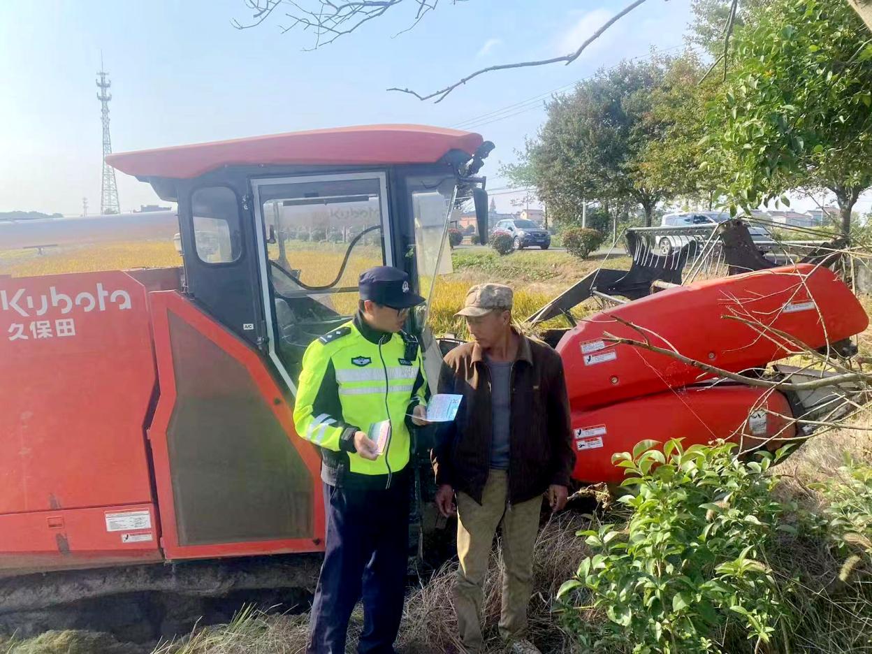 眼下正值秋收秋种农忙时节,各类农用车、收割机、拖拉机行驶在田间地头,车流量骤增,交通安全隐患加大。为进一步抓好农村地区秋季道路交通安全宣传工作,有效增强辖区群众交通安全意识和文明出行意识,全力防范和减少农村地区秋季交通事故的发生,助力秋收秋种有序进展,11月4日上午,南京市公安局高淳分局交通警察大队桠溪中队结合秋冬攻势工作要求,组织交通民警深入田间地头开展交通安全宣传活动,为秋收秋种保驾护航。