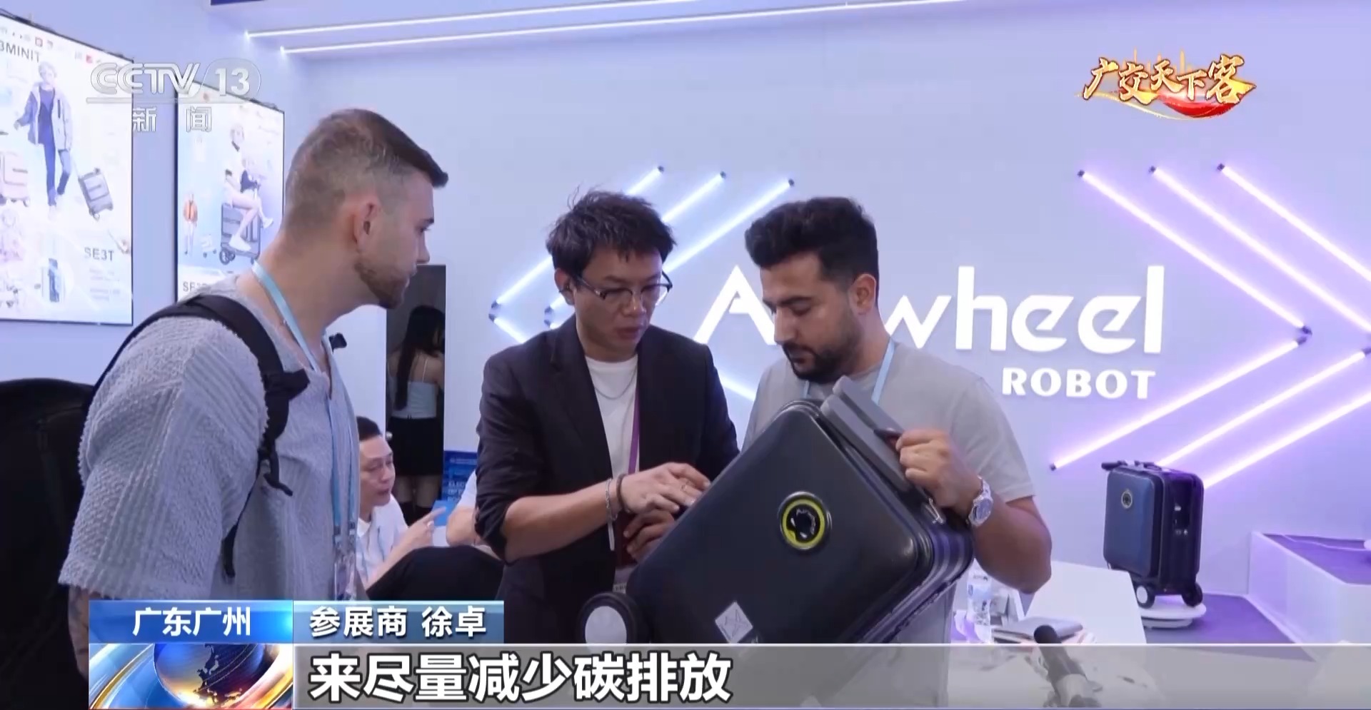 参展商 徐卓:我们的材料是采用的高密度的铝合金,再加上绿色环保的ABS(热塑型高分子)材料来组合成我们这个基本的箱体,尽量减少碳排放。