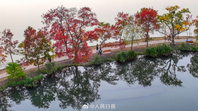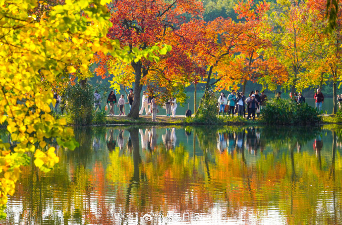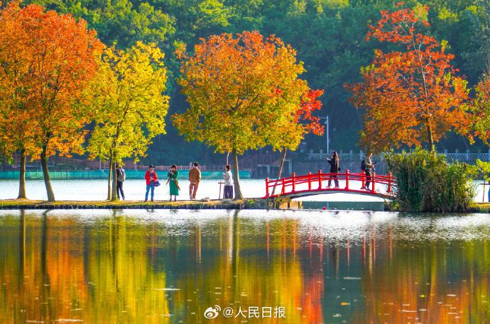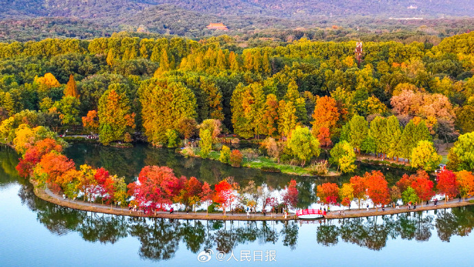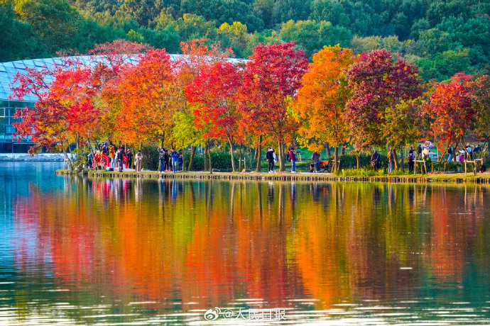 11月5日,南京中山植物园秋色缤纷,游人置身秋景中,如徜徉油画世界。