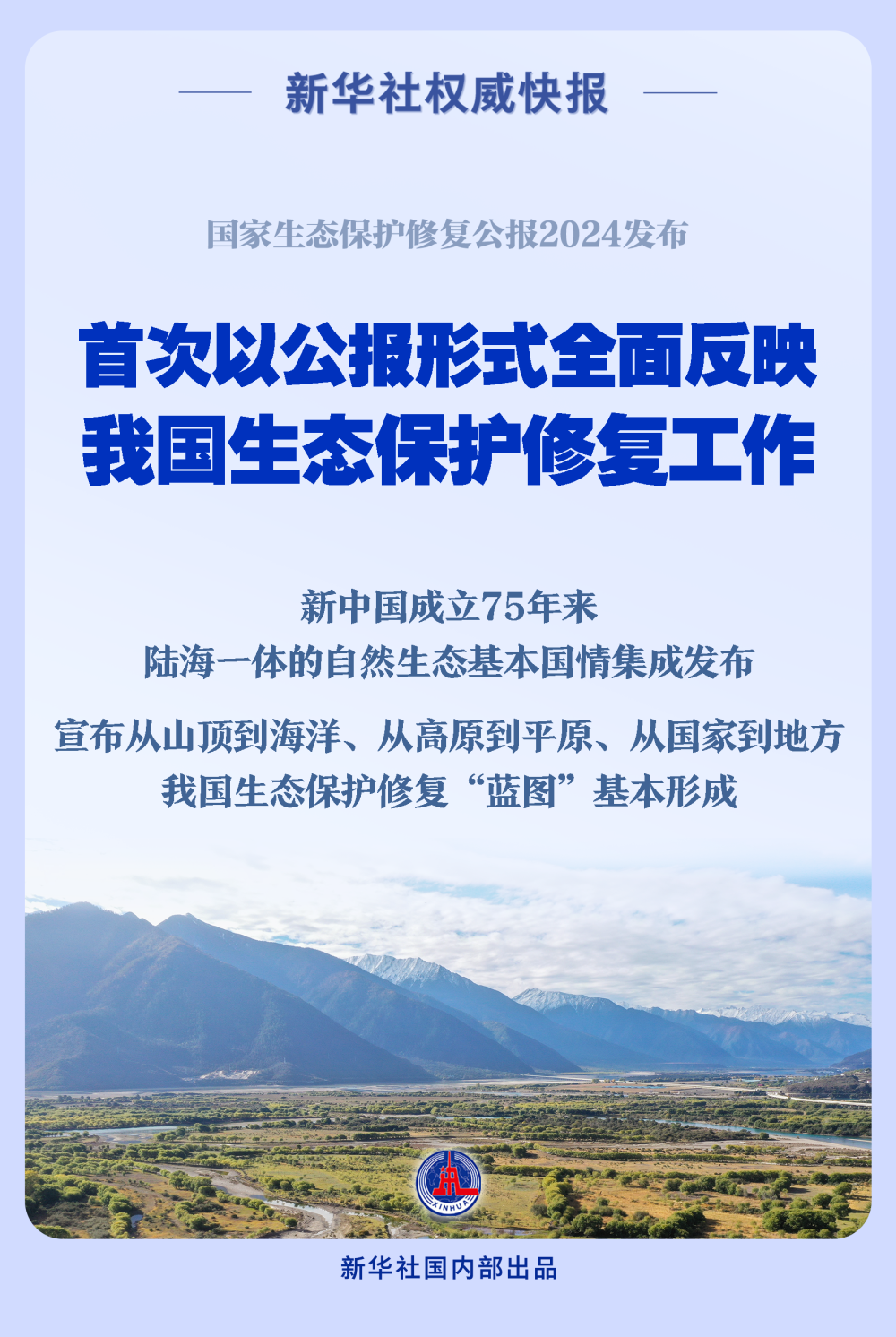 公报集成发布了新中国成立75年来陆海一体的自然生态基本国情,公布了“真金白银”实施的生态修复重大行动,宣布我国从山顶到海洋、从高原到平原、从国家到地方的全国生态保护修复“蓝图”基本形成。