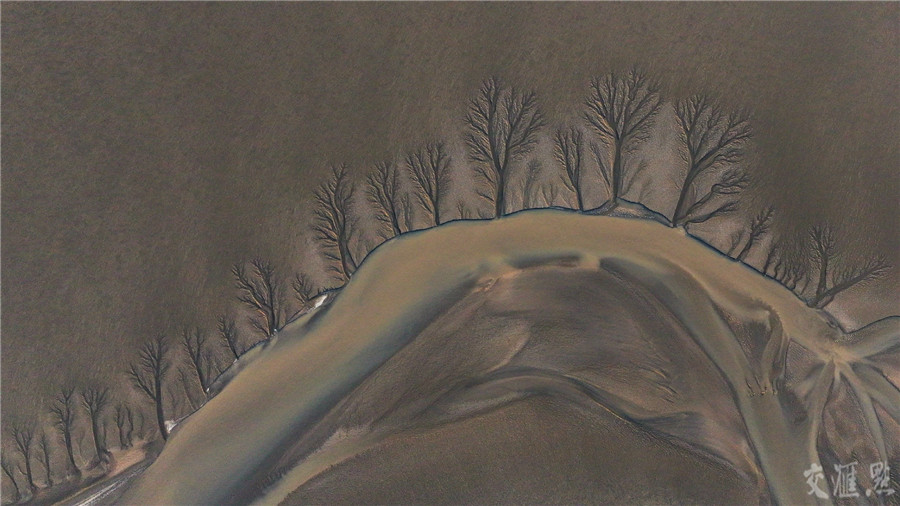 10月29日,东台条子泥湿地拍摄的“潮汐树”。新华社记者 邓华 摄