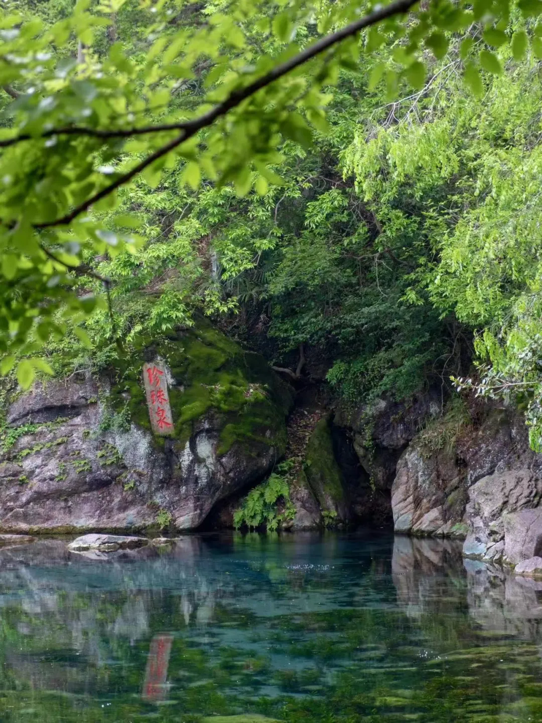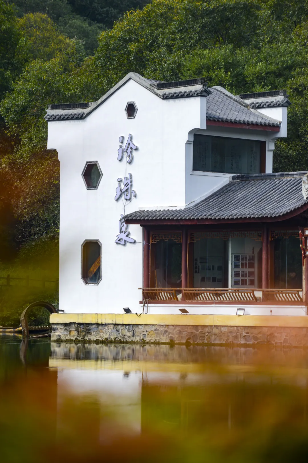 周边的树木渐渐变色,与碧绿的泉水相互映衬,构成一幅美丽的山水画卷。