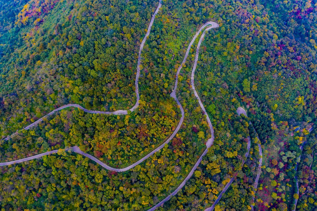晚秋的老山像是被打翻的调色盘,树叶变得五彩斑斓,红色、黄色、橙色交织在一起,仿佛一幅绚丽的画卷。