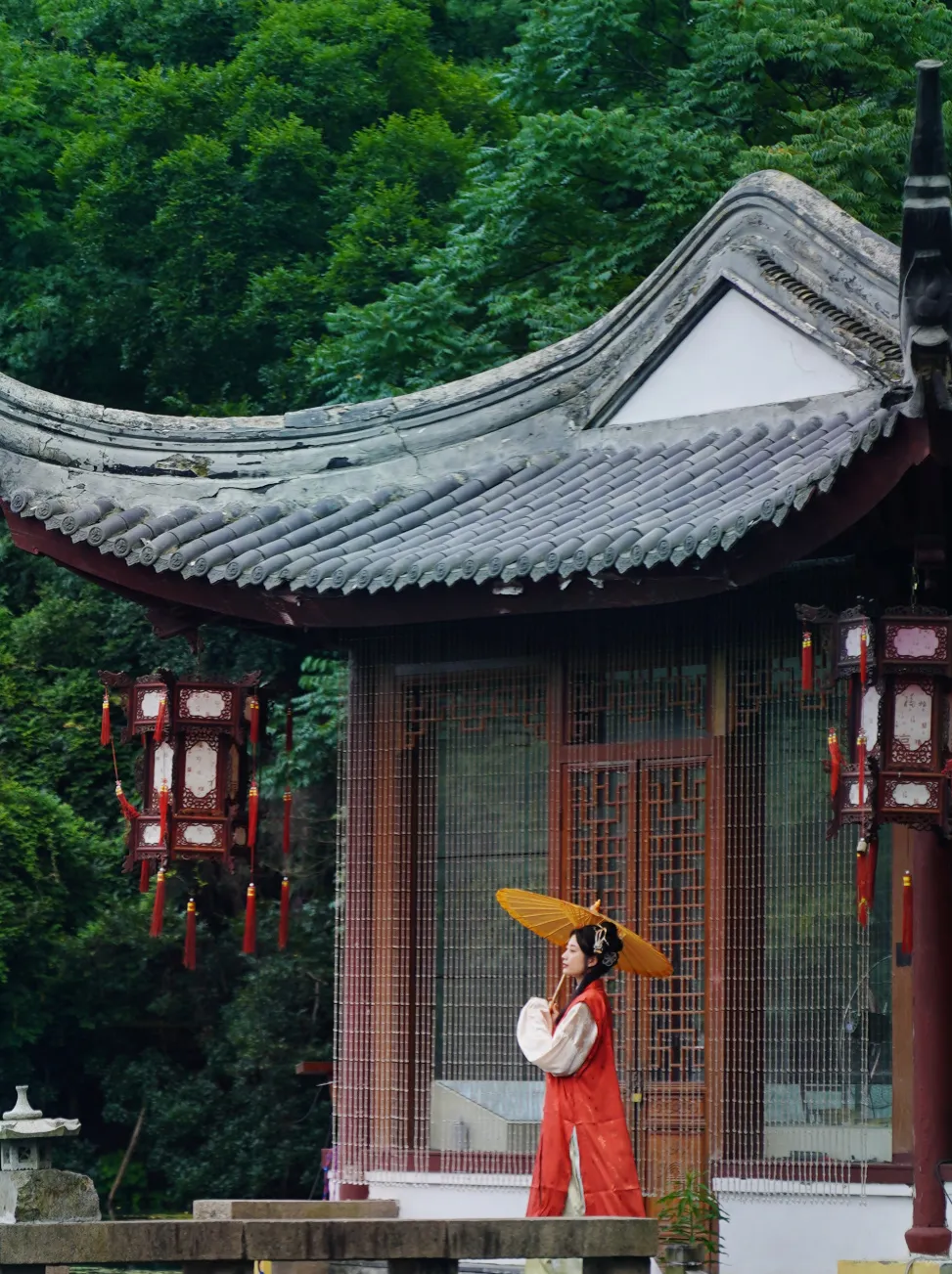 景区位于老山北麓,依山而建,环境优美。晚秋时,山上的树叶变得五彩斑斓,与景区内的白墙黑瓦的建筑相得益彰。