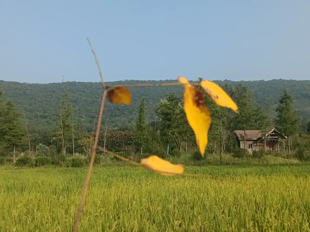 晚秋时节,山上的树叶变得绚丽多彩,山谷中的稻田金黄一片,仿佛一幅金色的画卷。