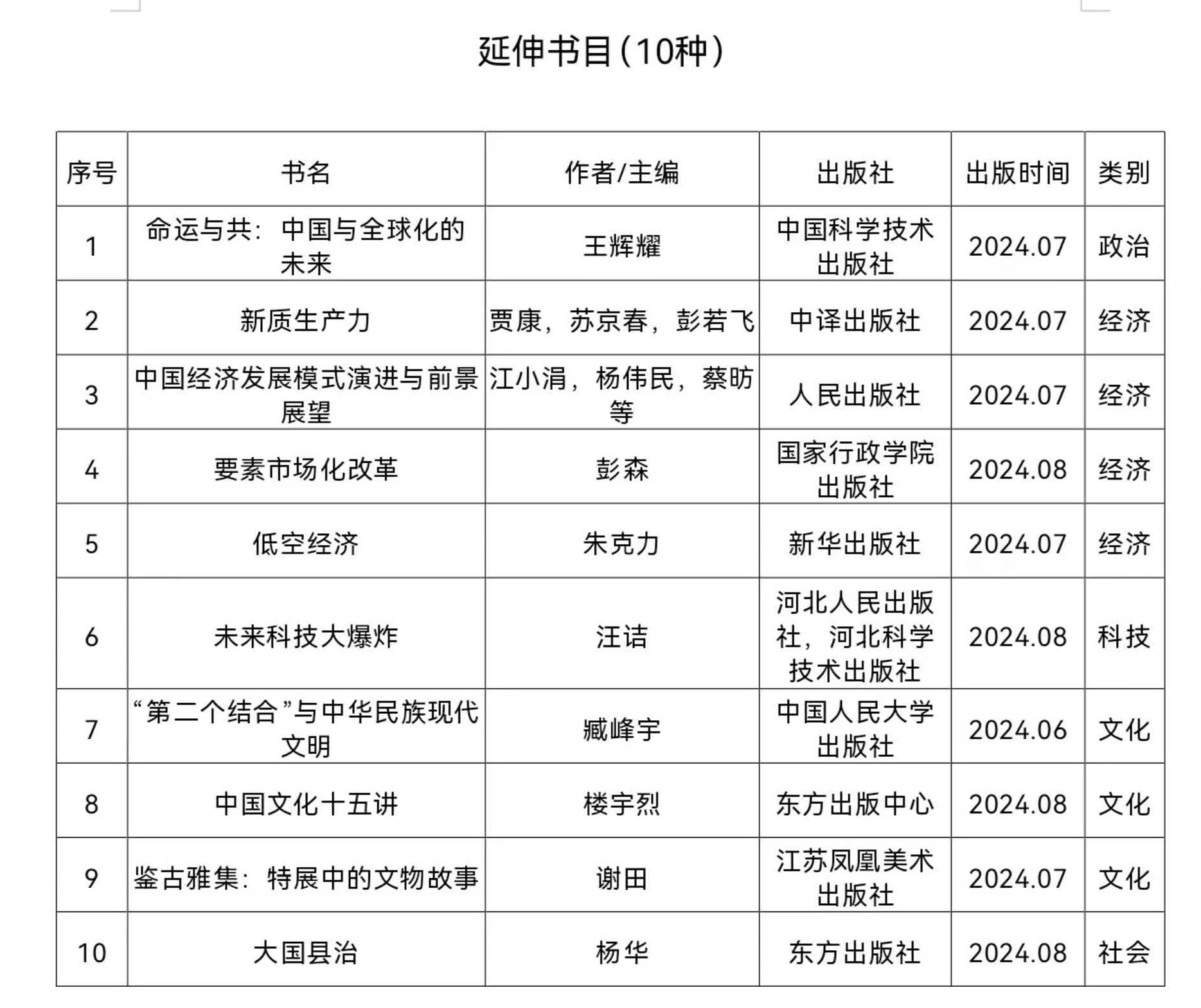 “新华书房”是由江苏省新闻出版局、江苏省全民阅读促进会、新华日报社联合推出的全媒体阅读品牌,以全省党员干部为主要受众,倡导“在阅读中开阔眼界、增长知识,在书香中滋养心灵、提高修养”。经榜单调研、行业推荐和专家评审,2024年第三季度“新华书房”推荐书目10本好书和10本延伸书目精彩出炉——